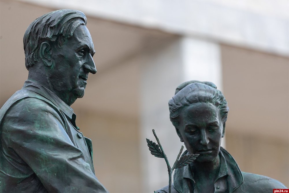 Памятник «Музейщикам Пушкиногорья» на площади перед НКЦ Пушкинского заповедника. Фото: pskov.ru