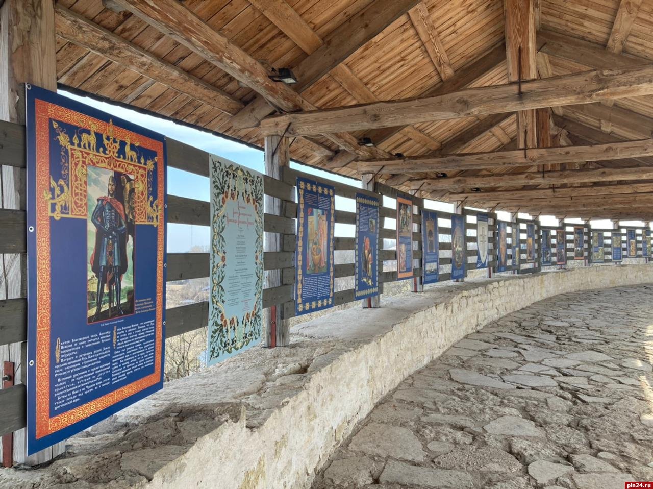 Фото: общий вид выставки «Александр Невский. Спаситель земли Русской» в Изборской крепости
