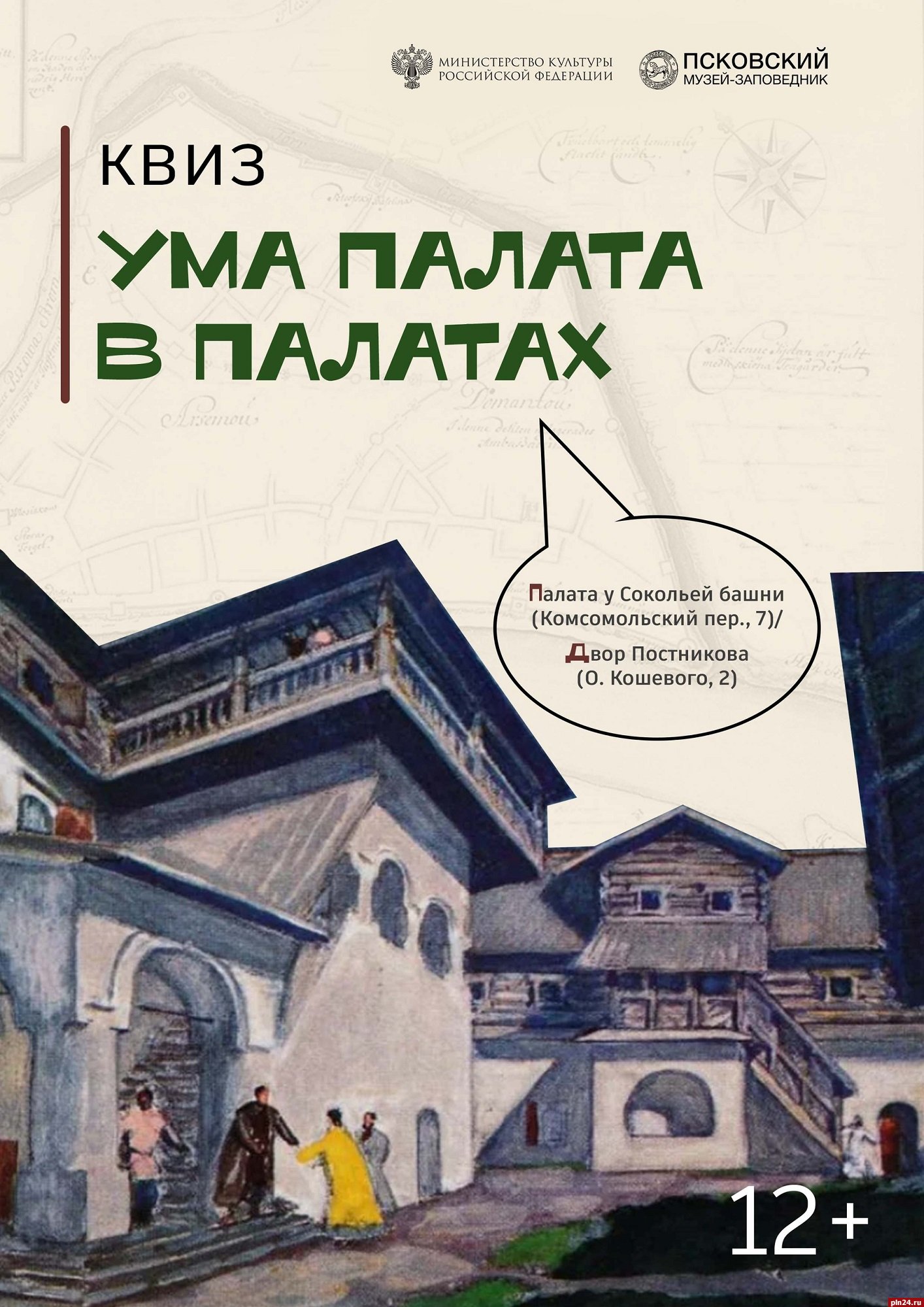 Псковский музей-заповедник приглашает любителей истории и краеведения на специальную интеллектуальную игру «Ума палата в Палатах», приуроченную к юбилейной дате — 150-летию музея в декабре и январе. Об этом Псковской Ленте Новостей сообщили в пресс-службе музея.