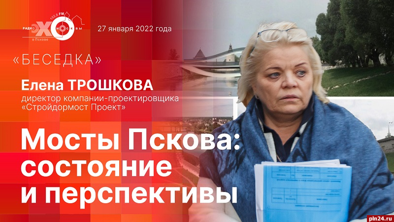 Предлагаем вашему вниманию видеотрансляцию программы «Беседка», которая в эти минуты начинается в прямом эфире радио «Эхо Москвы» в Пскове (102.6 FM). Гость студии — директор компании-проектировщика «Стройдормост Проект» Елена Трошкова.