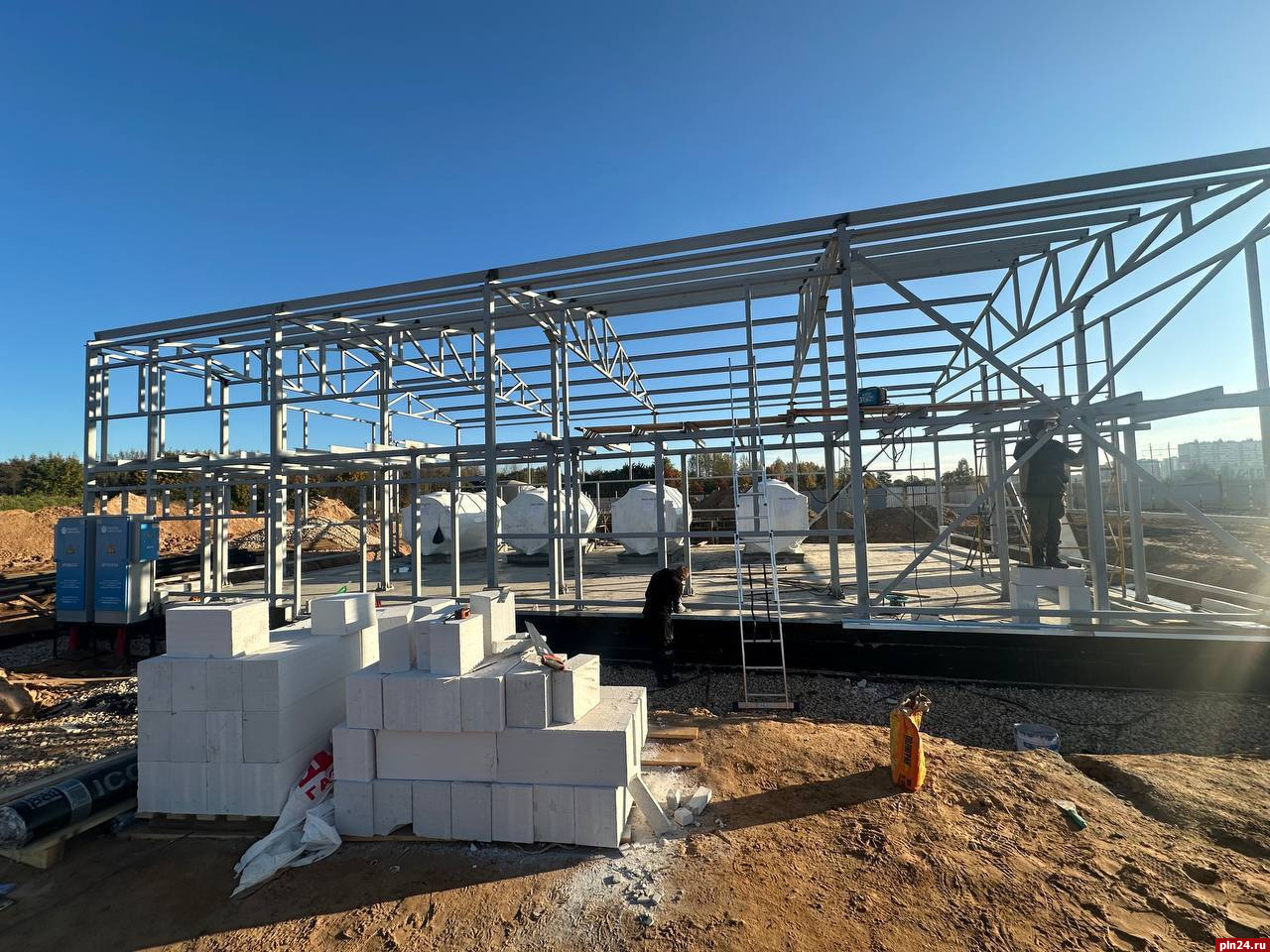 Строительство котельной на 12 МВт продолжается в деревне Хотицы Псковского района. Ход строительства обсудил губернатор Псковской области Михаил Ведерников со своим заместителем Игорем Шатурным в ходе рабочей встречи.