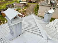 В селе Середка по улице Родионова, 1 исполнитель работ произвел усиление стропильной системы, утепление чердачного помещения, огнезащитную обработку стропильной системы, смену кровельного покрытия и водосточной системы, ремонт дымовых труб.