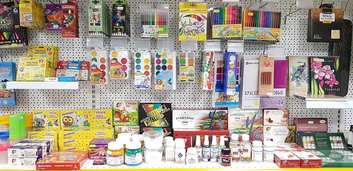 В магазине на улице Рокоссовского, 16 (ТЦ «Сфера») можно приобрести любые детские товары для школы и творчества – пеналы, ручки, тетради, дневники, линейки, краски, альбомы, кисти, пластилин, цветные карандаши, мелки и многое другое. Есть