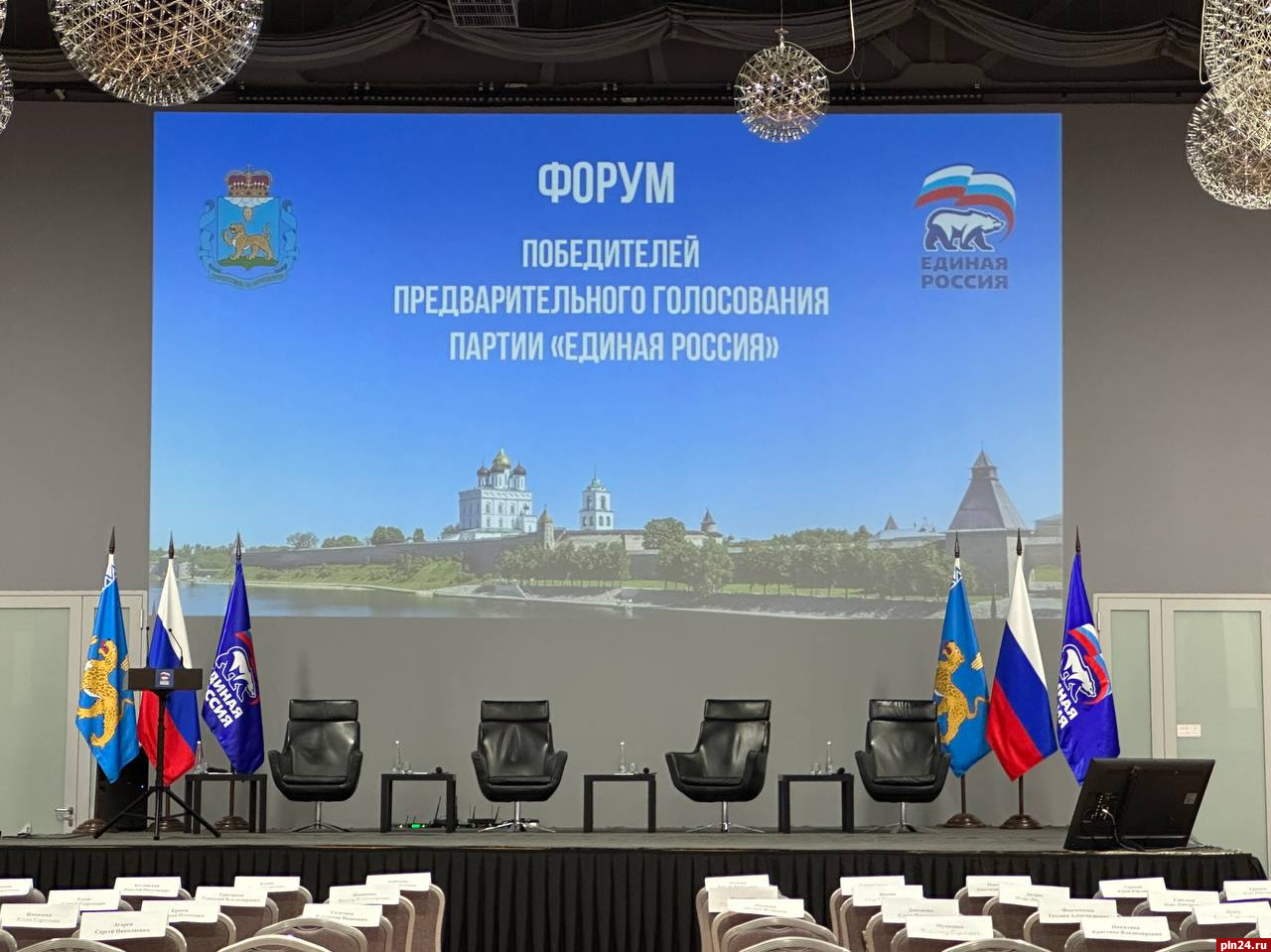 Форум победителей предварительного голосования партии «Единая Россия» открылся в Пскове сегодня, 13 июня, передает корреспондент Псковской Ленты Новостей.