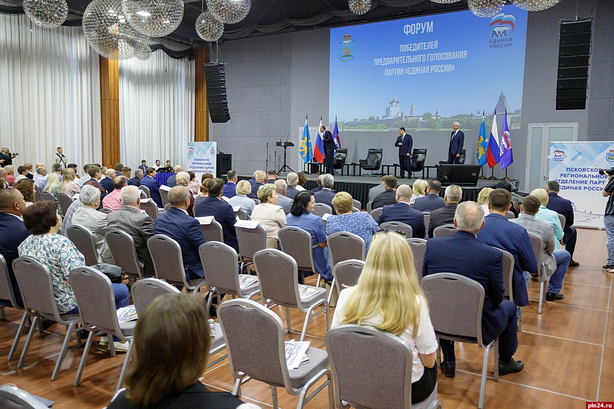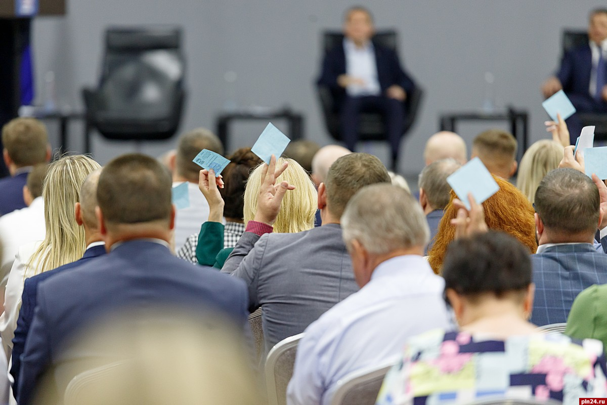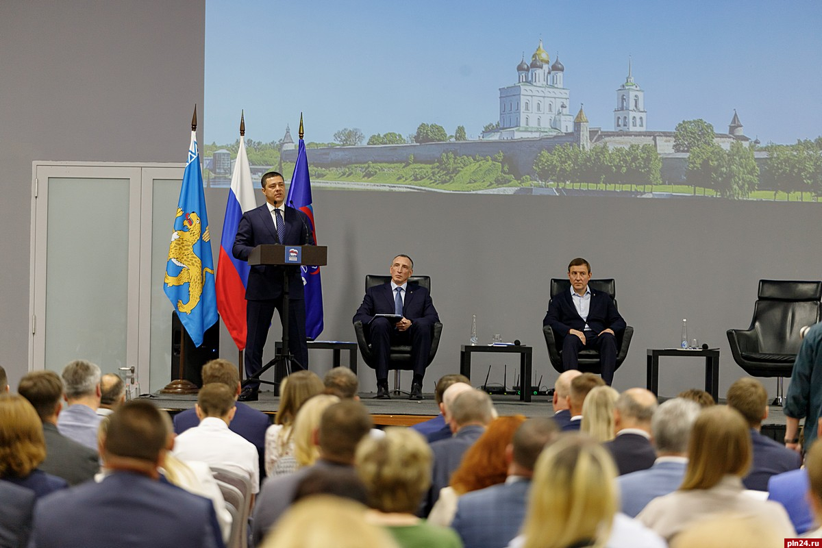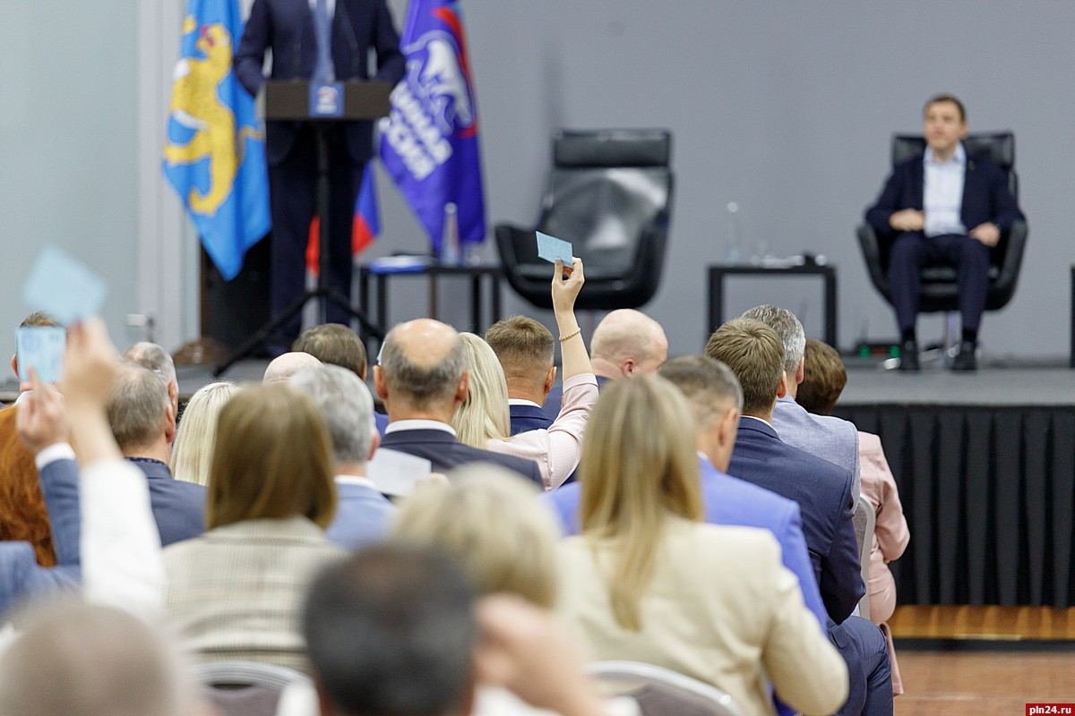 По окончании форума состоялась XXVIII конференция Псковского регионального отделения партии, на которой партийцы подвели итоги предварительного голосования «Единой России» и выдвинули кандидатуру действующего губернатора Псковской области Михаила Ведерникова для участия в губернаторской кампании-2023.