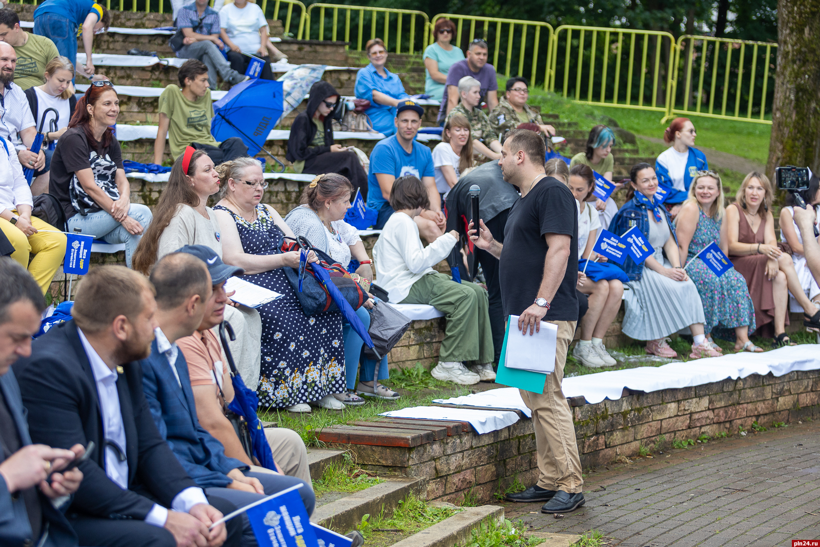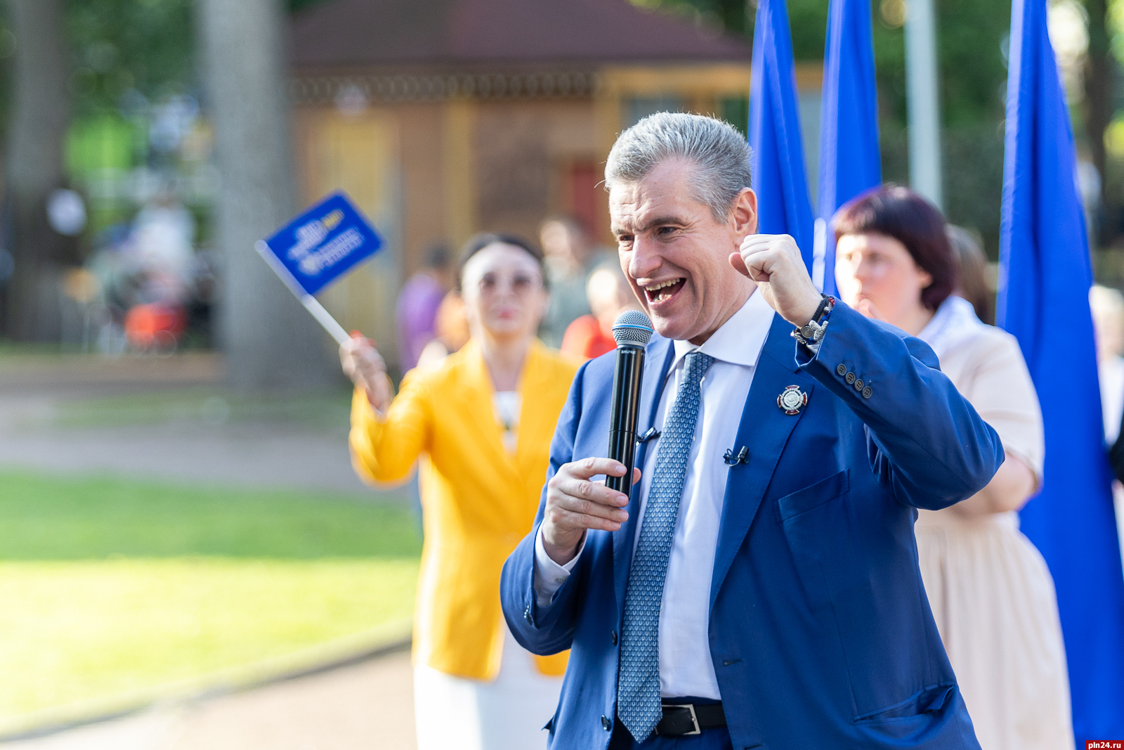 На снимке: Леонид Слуцкий — псковичам: Здесь, в Пскове, сосредоточены величайшие традиции русской истории, и сегодня эта древняя земля призывает нас быть плечом к плечу, несмотря на место жительство, на наличие партийного билета в кармане.