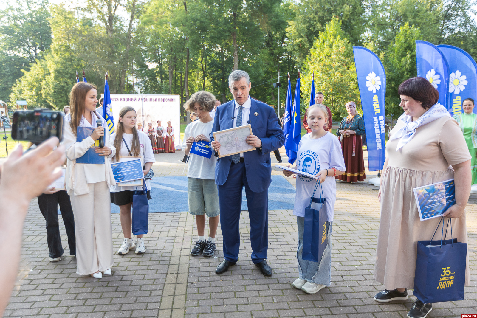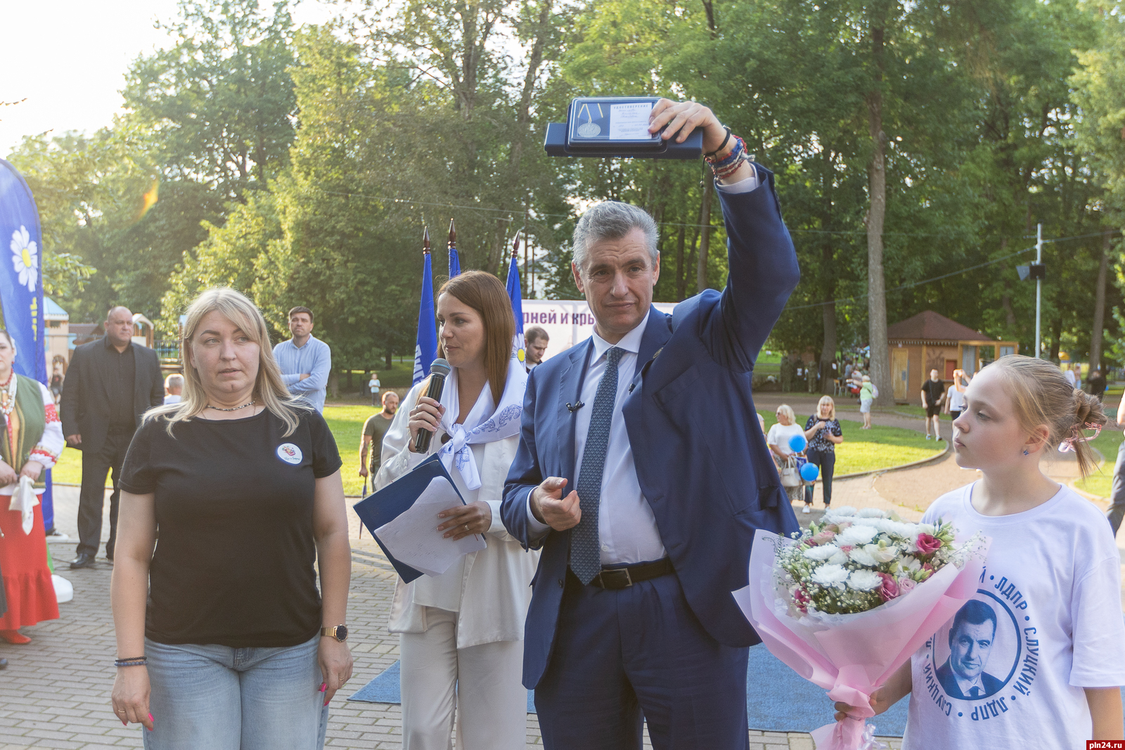 Поэтому приезд в Псков преемника Владимира Жириновского - председателя ЛДПР, члена Госсовета РФ, председателя комитета Госдумы по международным делам Леонида Слуцкого вызвал неподдельный интерес. Политик принял участие в фестивале русской культуры «Сила корней и крылья перемен» под эгидой Лиги женщин ЛДПР и в очередной раз побывал в Псково-Печерском монастыре. Желающим сфотографироваться с партийным лидером, взять у него автограф, перекинуться парой слов в Детском парке Пскова не было отбоя. Несмотря на насыщенный график непродолжительной поездки, Леонид Слуцкий нашел время ответить на вопросы Псковской Ленты Новостей.