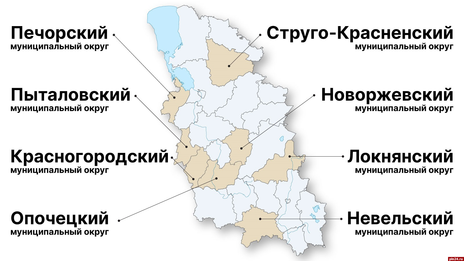 Первопроходцами в 2023 году стали 8 районов, преобразованных в округа (Стругокрасненский, Печорский, Пыталовский, Красногородский, Опочецкий, Невельский, Новоржевский, Локнянский). Уже первый этап реформы ознаменовался приходом на руководящие посты группы новых управленцев — таких, как Иван Белугин в Локне, Валерий Зайцев в Печорах, Любовь Трифонова в Новоржеве. В других округах остались действующие руководители (Александр Волков в Стругах Красных, Олег Майоров в Невеле, Юрий Ильин в Опочке, Валентина Понизовская в Красногородске, сменщица последней на посту руководителя ассоциации муниципальных образований Псковской области Вера Кондратьева в Пыталово).