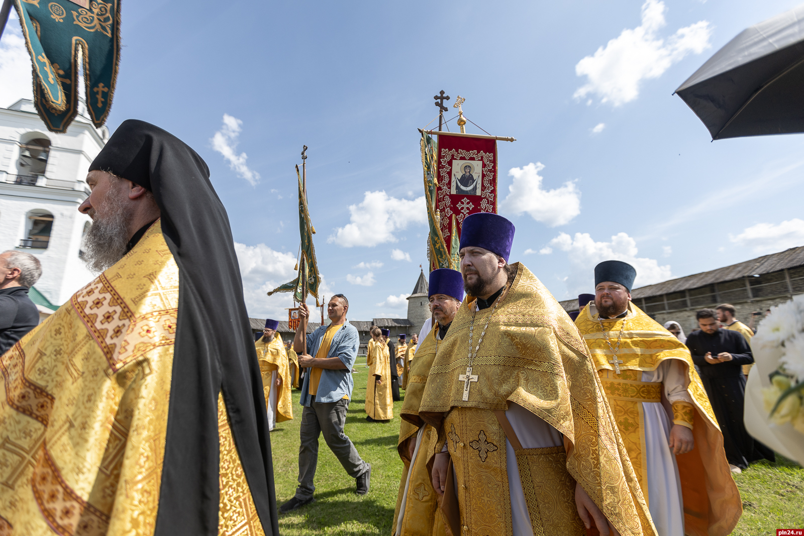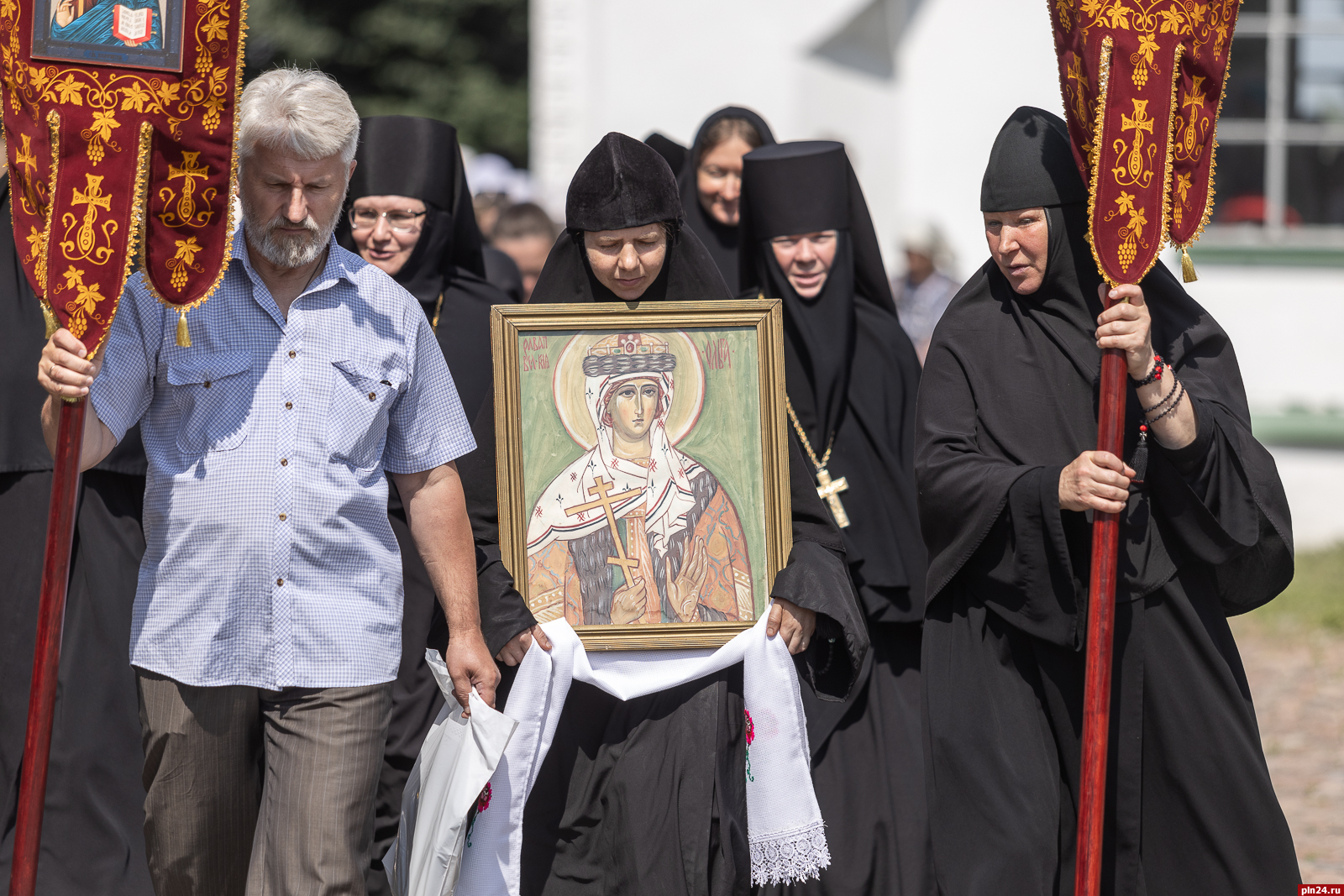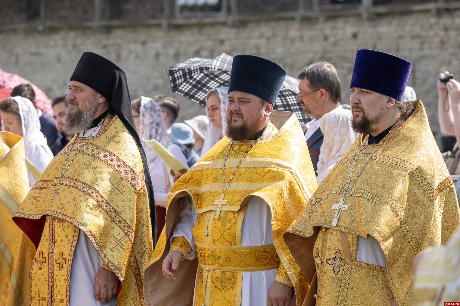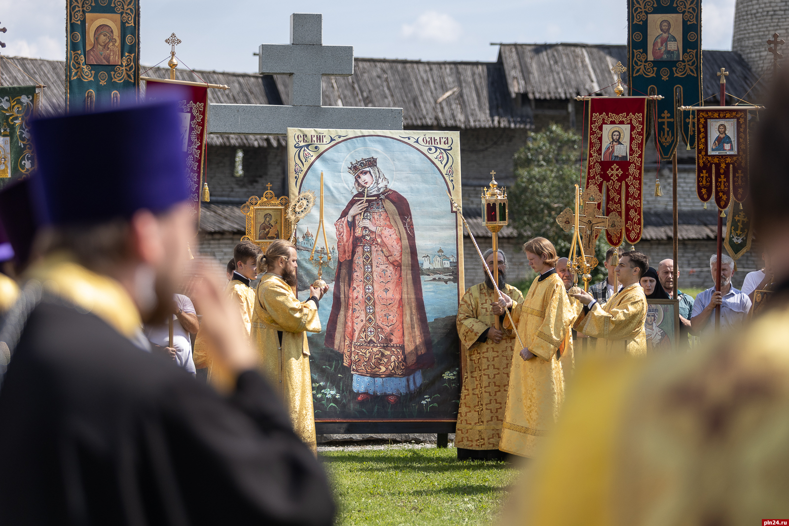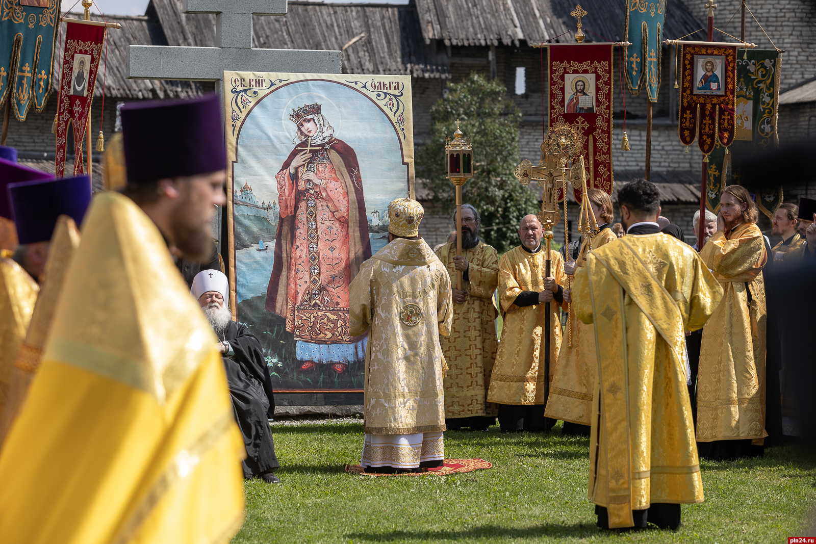 Праздничный молебен святой равноапостольной княгине Ольге совершили в Псковском кремле 24 июля. Событие традиционно прошло на вечевой площади в честь Дня памяти княгини. Молебен возглавил митрополит Псковский и Порховский Матфей (Копылов). Вместе с прихожанами память святой почтили глава города Пскова Борис Елкин, первый заместитель губернатора области Вера Емельянова, уполномоченный по правам ребенка в Псковской области Наталия Соколова и генеральный директор Псковского музея-заповедника Светлана Мельникова. Молебен завершился окроплением православных христиан святой водой. Подробнее о торжественном молебне – в фоторепортаже Анны Тягуновой.