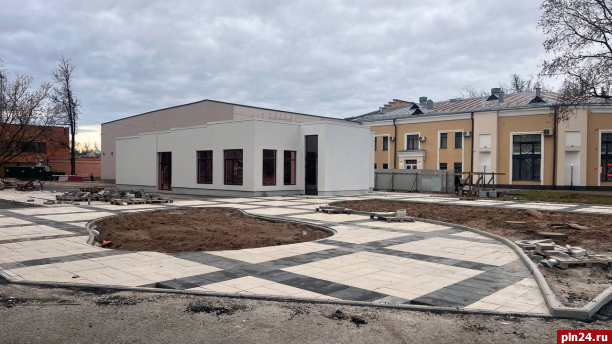 Фотофакт: Благоустройство территории началось вокруг здания бывшего казино в Пскове