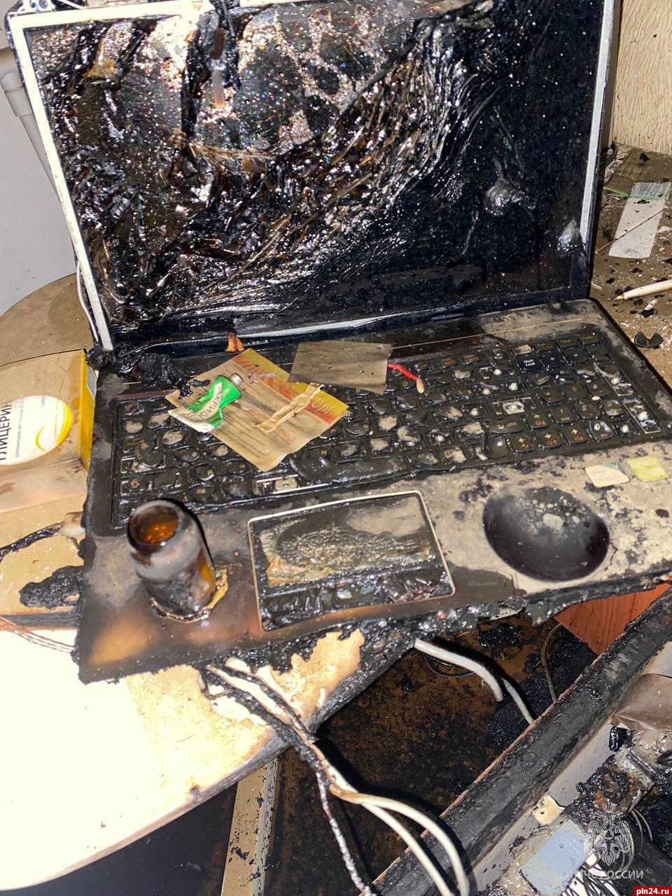 На фото не весь материальный ущерб: повреждены балкон, диван, компьютерный стол и ноутбук, гарь покрыла квартиру.