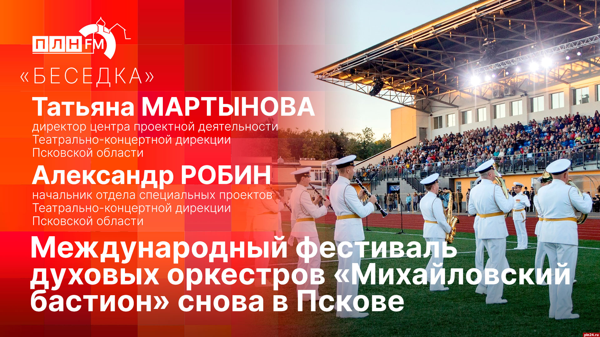 Как на него попасть? Оркестры из каких стран примут участие в фестивале? Какое событие фестиваля будет самым зрелищным? Предусмотрены ли льготы для зрителей? Об этом и многом другом в рамках программы «Беседка» расскажут директор центра проектной деятельности Театрально-концертной дирекции Псковской области Татьяна Мартынова и начальник отдела специальных проектов ТКД Александр Робин.
