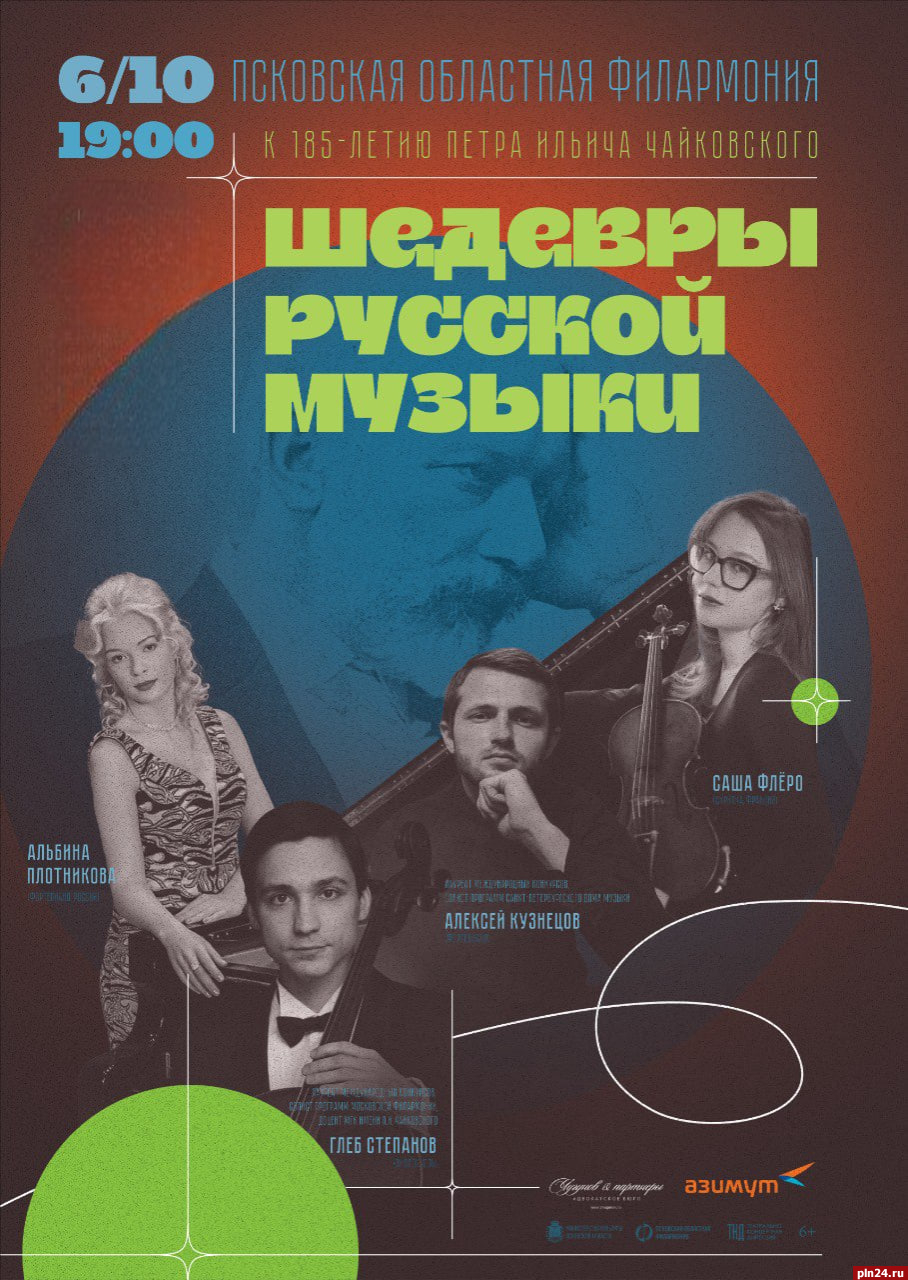Концерт участников XXI Международного Крымского музыкального фестиваля — «Шедевры русской музыки — к 185-летию П. И. Чайковского» состоится 6 октября в Пскове, сообщили Псковской Ленте Новостей в пресс-службе Театрально-концертной дирекции региона.