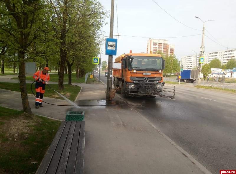 В рамках летней и весенней уборки подрядчик по содержанию улично-дорожной сети на Запсковье и Завеличье уделяет особое внимание удалению загрязнений, скапливающихся на поверхности проезжей части, тротуаров, остановок общественного транспорта. Это необходимо для исключения запыленности воздуха, замусоривания городских территорий.
