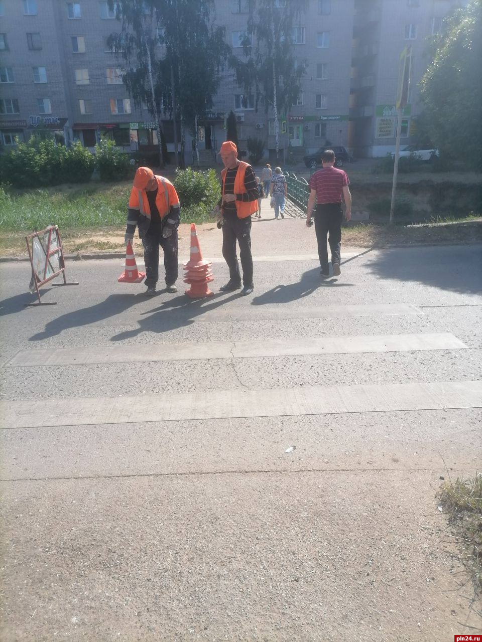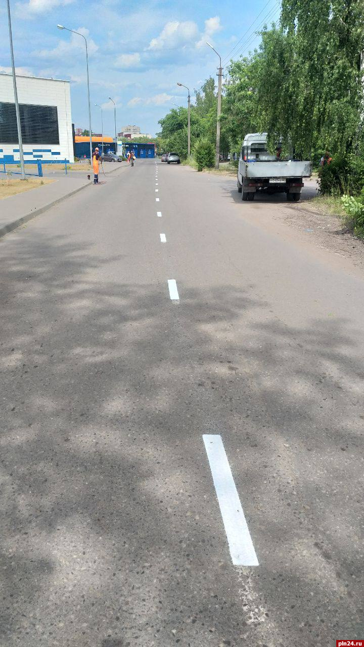 Силами муниципального унитарного предприятия «ДСУ» выполнялось нанесение разметки на улицах Гражданской, Вокзальной, Пескарева и Нелидовской. Продолжались работы по ремонту ряда дворовых территорий.
