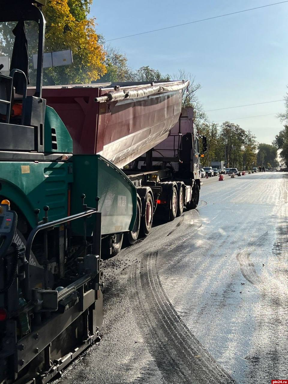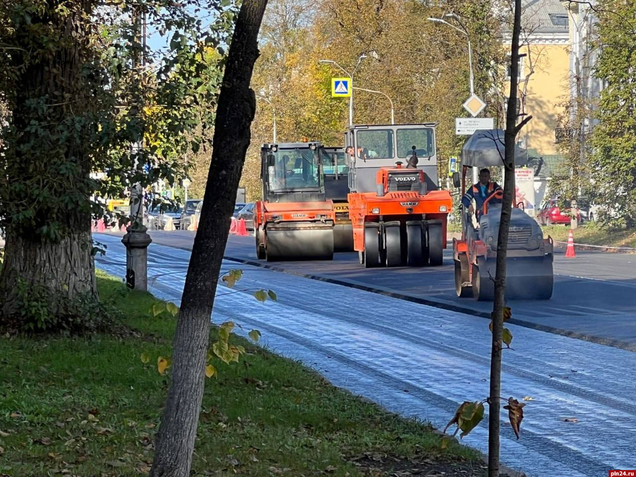 Верхний слой асфальта укладывают на правой стороне ремонтируемого участка Октябрьского проспекта в Пскове сегодня, 25 сентября. Как в своем Telegram-канале сообщил глава города Борис Елкин, рабочие перейдут на левую сторону дороги уже через день.