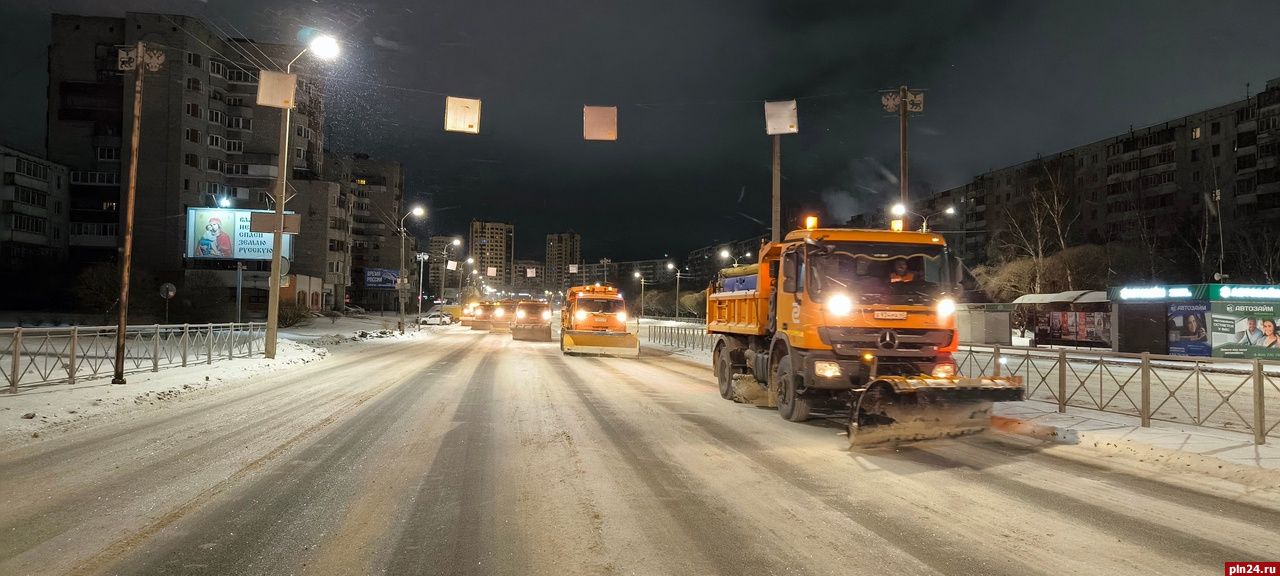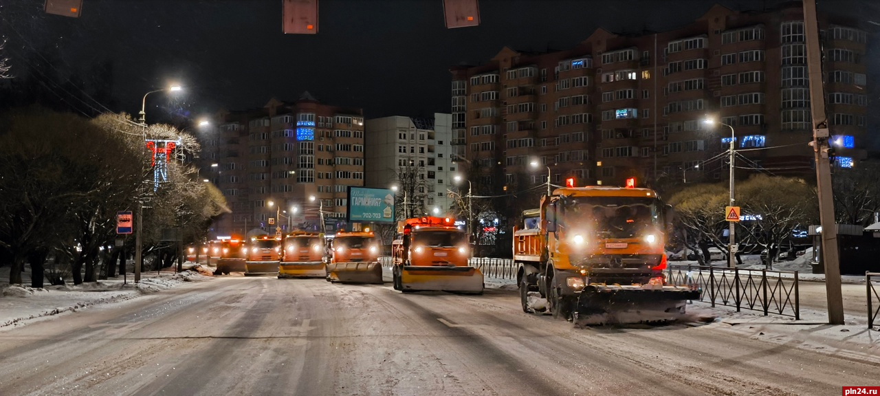 Улицы Пскова продолжают чистить от снега. Об этом Псковской Ленте Новостей сообщили в ООО «СитиИнвестГрупп».