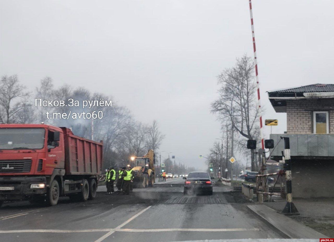 Серьезная пробка образовалась на Крестовском шоссе в Пскове из-за работ на переезде 3 ноября, сообщается в Telegram-канале «Псков. За рулем».