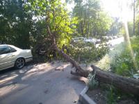 Яблоня упала во дворе дома №32 по улице Коммунальной. «У меня во дворе яблонька навернулась на Kia. Убрали в течение 1,5 часа», - рассказала женщина.