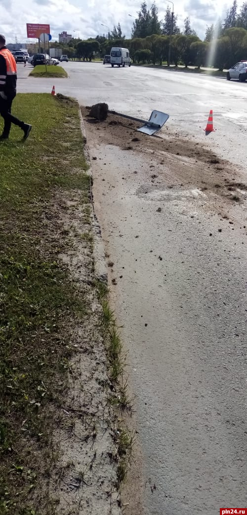 После этого водитель «Ауди» наехал на стойку дорожного знака и съехал с дороги.
