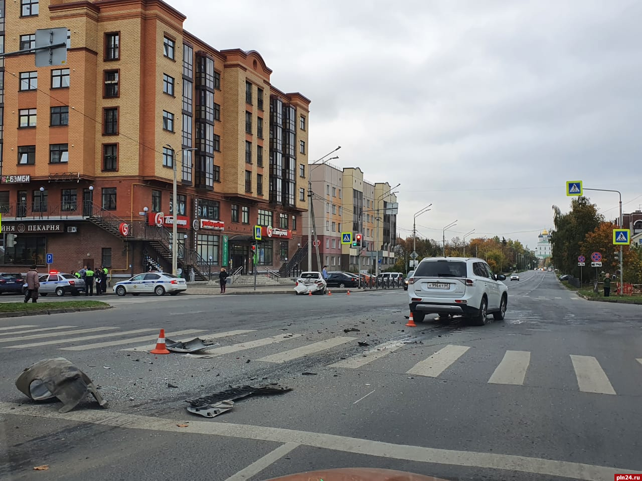 Два человека пострадали в результате столкновения автомобилей на перекрестке улиц Коммунальной и Народной в Пскове. Как сообщили Псковской Ленте Новостей в ГИБДД Пскова, ДТП произошло в 10:34 8 октября.
