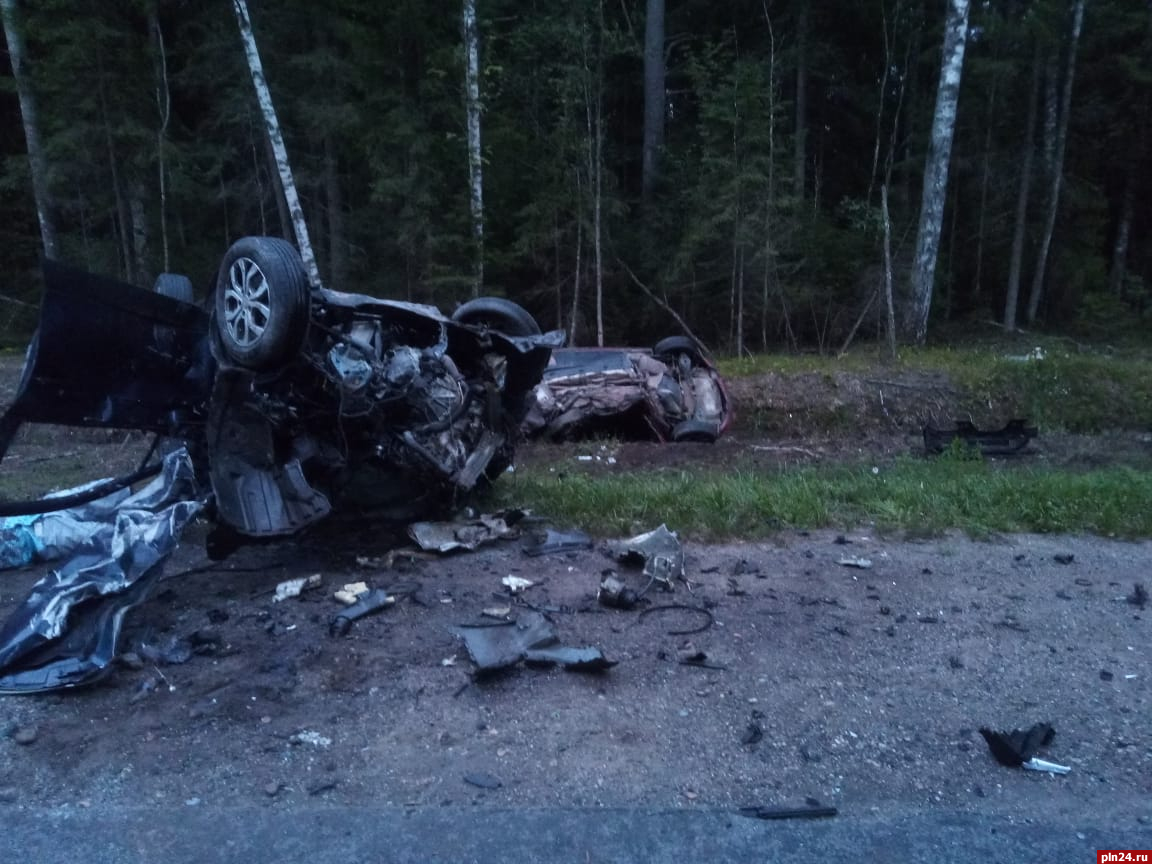 УМВД России по Псковской предоставило фото с места дорожно-транспортного происшествия, в котором, по предварительным данным, погибли три человека. Еще двое получили травмы.