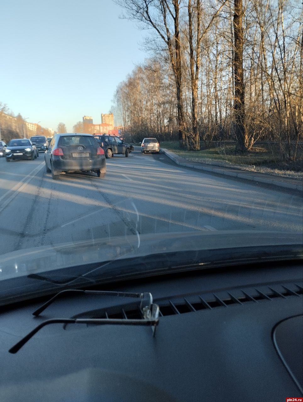 Два автомобиля столкнулись напротив Телецентра на Рижском проспекте в Пскове 22 ноября, сообщили Псковской Ленте Новостей очевидцы.