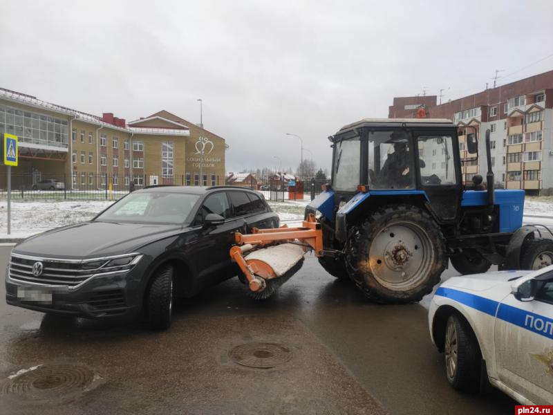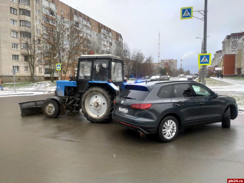 Тракторист оштрафован за наезд задним ходом на разворачивающийся Volkswagen Touareg в Пскове. Как сообщили Псковской Ленте Новостей в отделе Госавтоинспекции УМВД России по городу, столкновение произошло 24 ноября в 10.30 на улице Рокоссовского у дома 44, на перекрестке с улицей Байкова.
