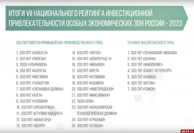 Особая экономическая зона производственно-промышленного типа «Моглино» сохраняет высокую позицию в рейтинге инвестиционной привлекательности российских площадок в 2023 году. Об этом Псковской Ленте Новостей сообщили в пресс-службе правительства региона.