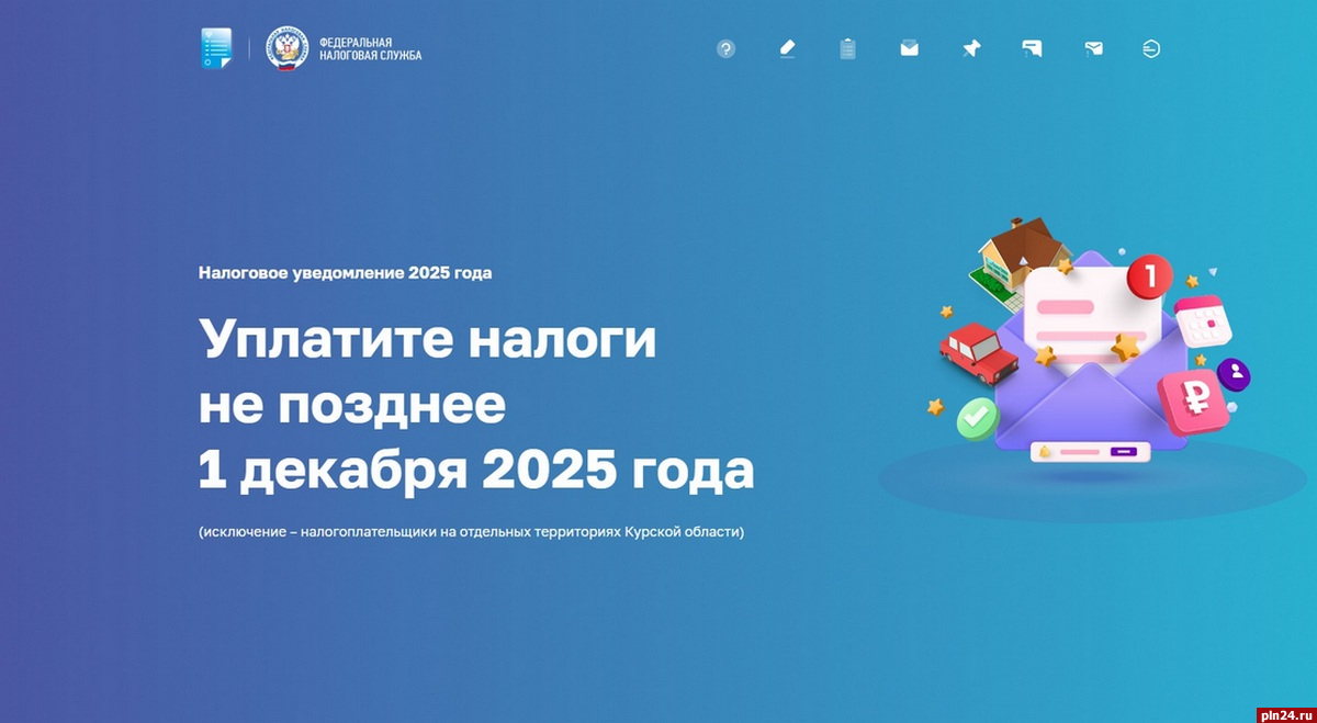Две недели осталось до окончания срока уплаты имущественных налогов за 2024 год, напомнили жителям региона в УФНС России по Псковской области.