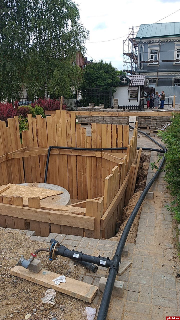Работы осуществляются в рамках проекта благоустройства территории Псково-Печерского монастыря и исторической части города Печоры.