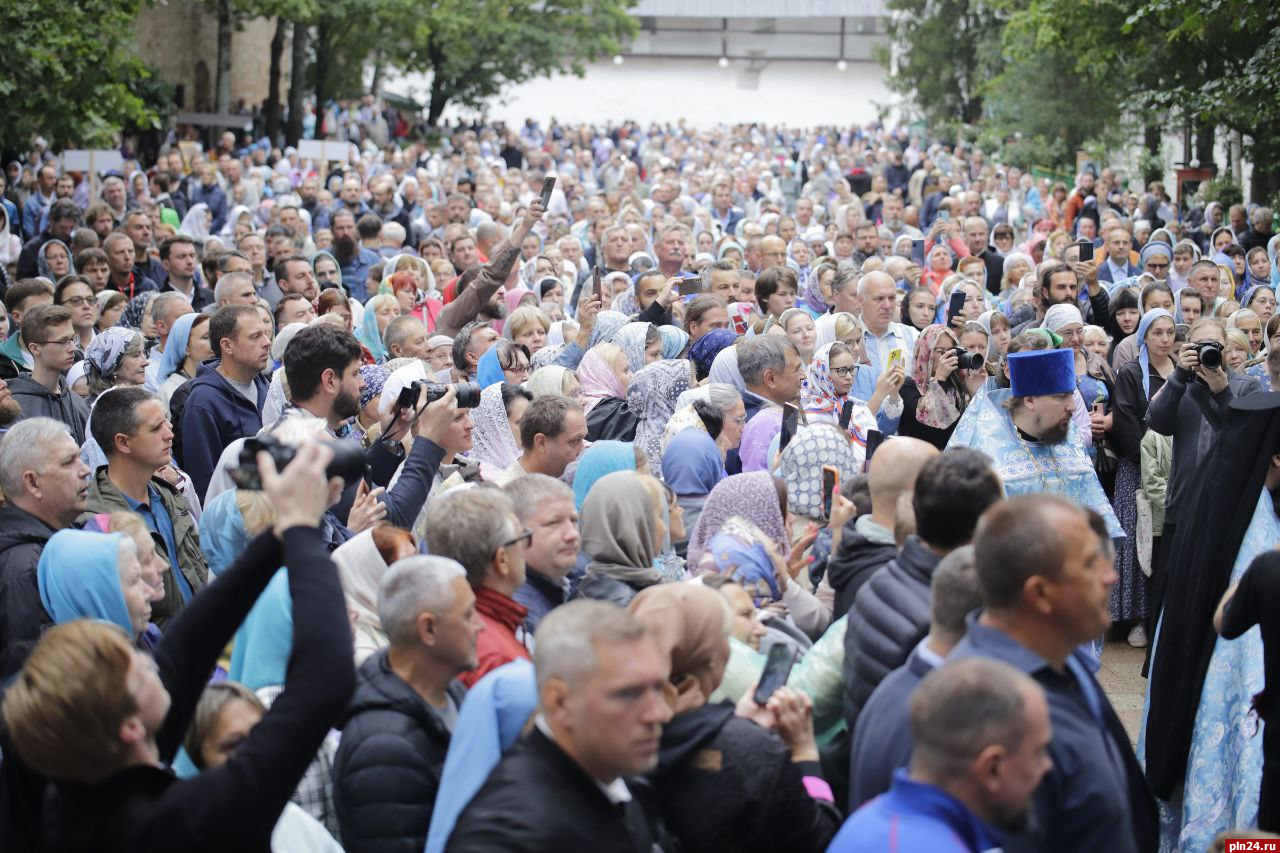 Тысячи верующих собрались на литургию на Михайловской площади Псково-Печерского монастыря сегодня, 28 августа, в день Успения Божией Матери и празднования 550-летия обители, передает корреспондент Псковской Ленты Новостей.