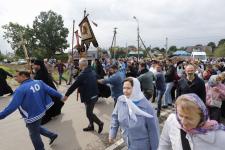 Крестный ход совершается с главной святыней обители - чудотворной иконой Успение Божией Матери, которая хранится в Печорах с XVI века.