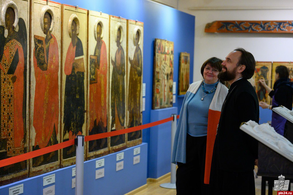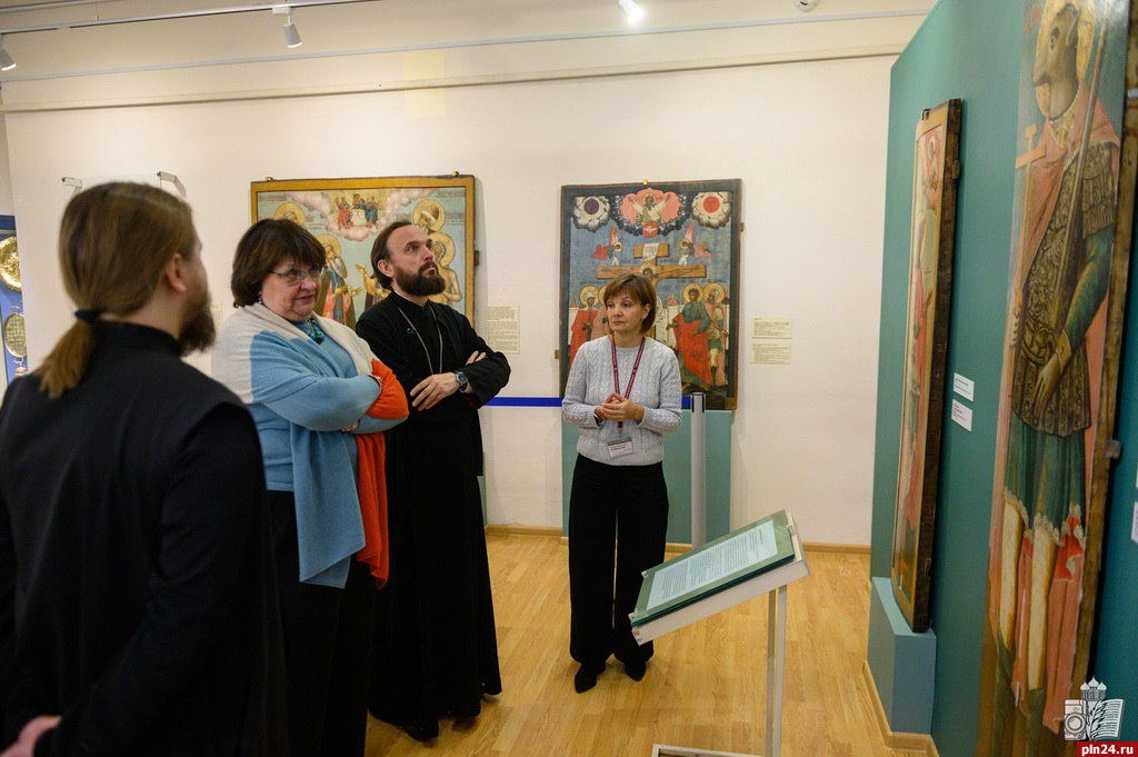 Она познакомила митрополита Арсения с экспозицией «Культура и искусство древнего Пскова» и выставкой картин разных эпох из собрания музея.