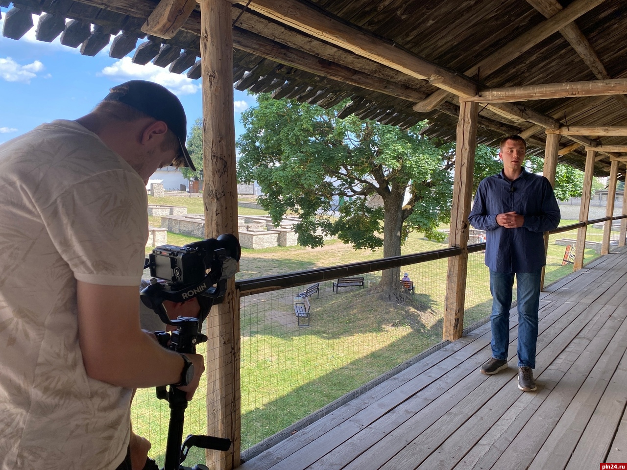 Съемки в Псковском музее-заповеднике продлятся два дня. Документальный фильм можно будет увидеть в августе-сентябре этого года на телеканале «Звезда».