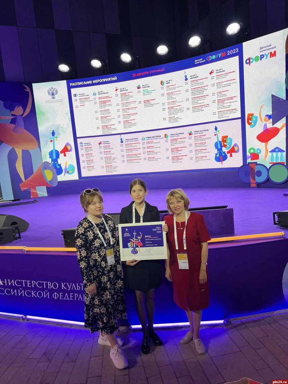 Творческая делегация из Псковской области приняла участие во II Международном детском культурном форуме, который проходил с 10 по 12 августа в Москве на площадке Новой Третьяковской галереи. Об этом Псковской Ленте Новостей сообщили в Псковском областном колледже искусств имени Н. А. Римского-Корсакова.