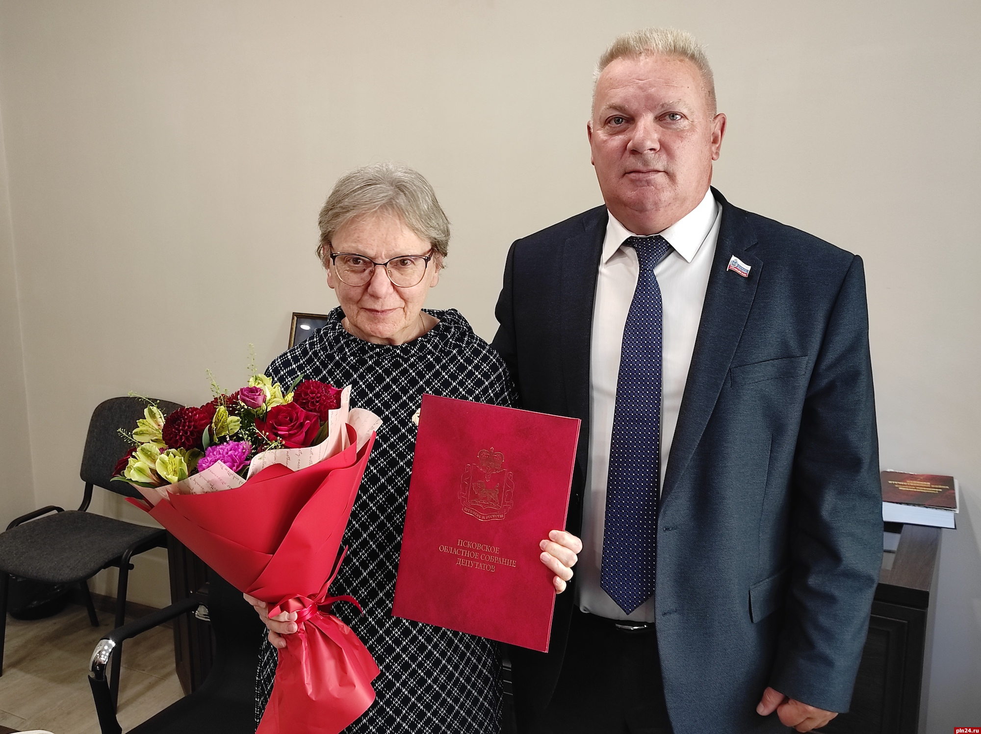 Старший научный сотрудник Псковского музея-заповедника Ирина Галицкая получила благодарность Псковского областного Собрания депутатов за многолетний добросовестный труд и большой вклад в развитие культуры Псковской области. Награду вручил заместитель председателя Псковского областного Собрания депутатов Игорь Дитрих, сообщили Псковской Ленте Новостей в пресс-службе Псковского музея-заповедника.