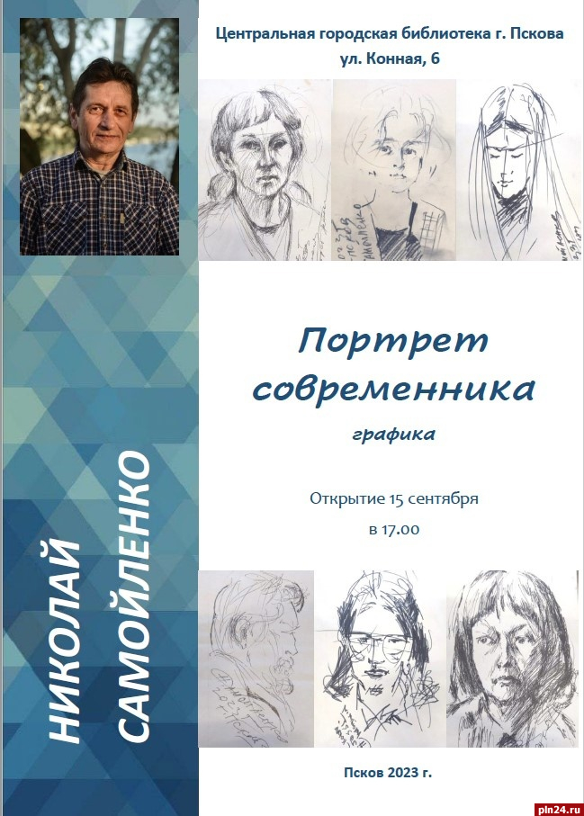 Выставка графики члена Союза художников России Николая Самойленко «Портрет современника» открылась в Центральной городской библиотеке Пскова (в библиотеке на Конной). В экспозиции представлено более сорока работ: в основном это портреты псковичей, в том числе псковских художников, и пейзажи в технике «быстрый карандаш», сообщили Псковской Ленте Новостей в учреждении.