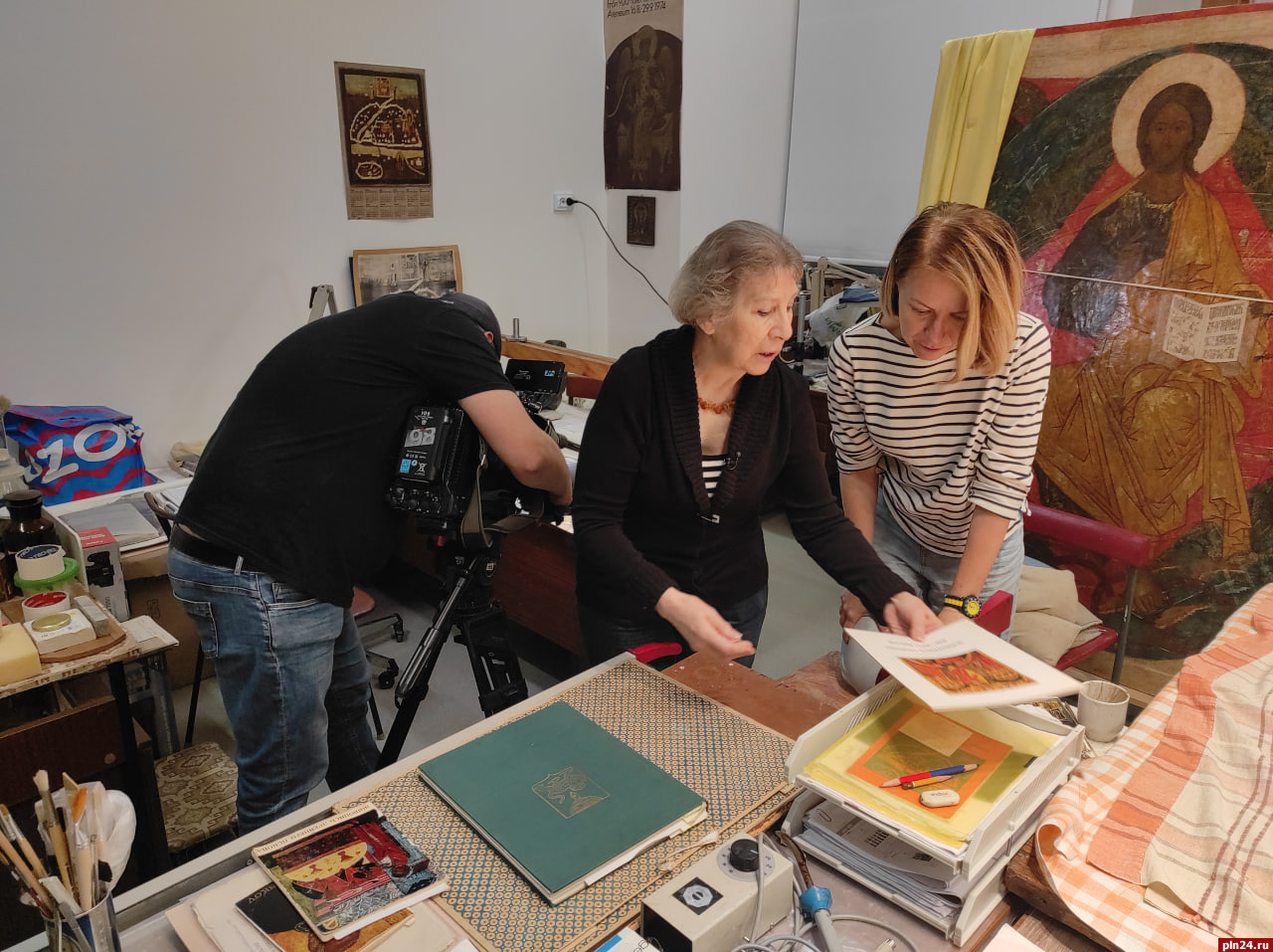 Съемки прошли в интерьере экспозиции «Культура и искусство древнего Пскова» и в реставрационной мастерской, гостем которой часто был сам Савва Ямщиков. Генеральный директор Псковского музея-заповедника Светлана Мельникова рассказала о том, что была лично знакома с ним еще по объектам реставрации Суздаля. Она пояснила, что и для Псковского музея Ямщиков сделал очень много.