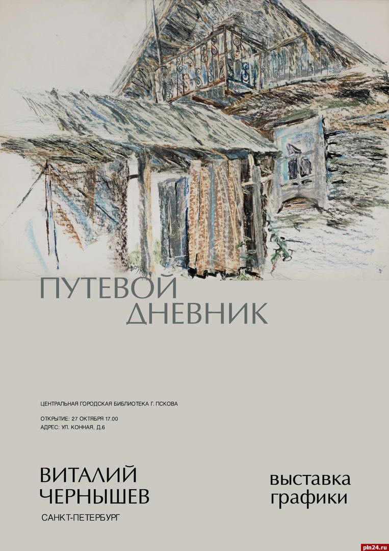 Выставка графики петербургского художника Виталия Чернышева «Путевой дневник» откроется в Центральной городской библиотеке Пскова 27 октября в 17.00. Об этом Псковской Ленте Новостей сообщили в учреждении.