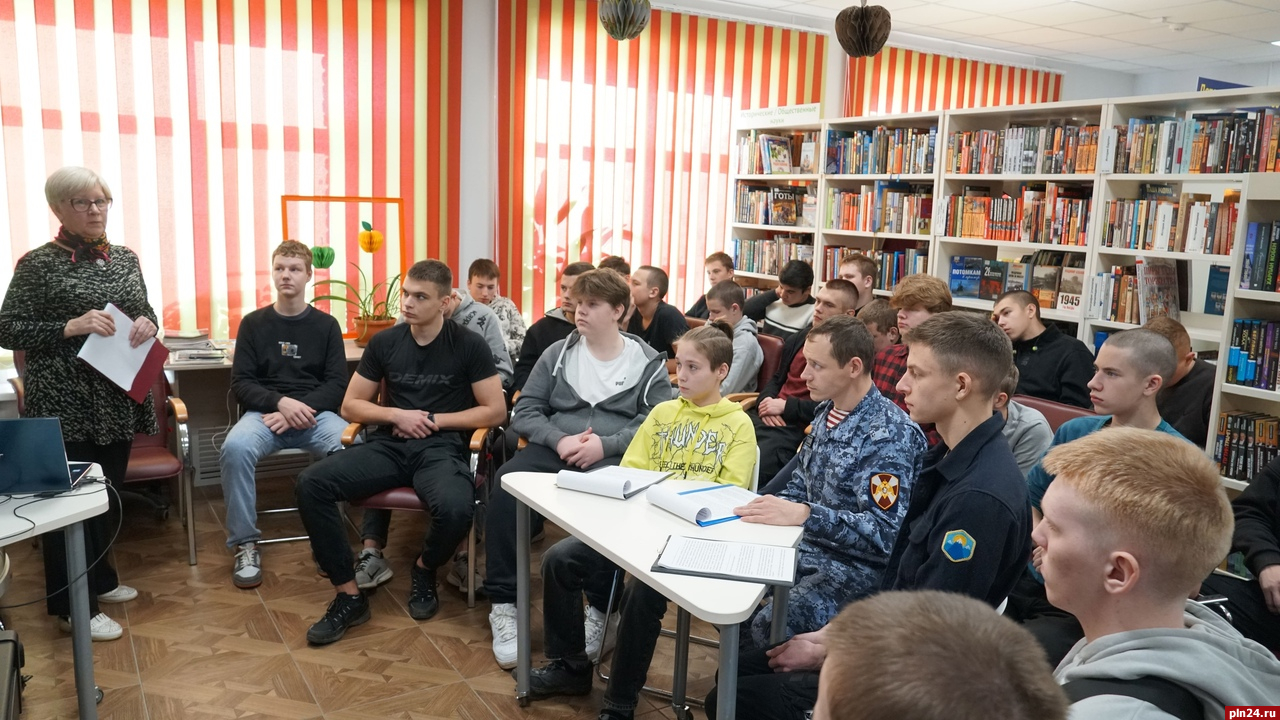 В мероприятии приняли участие представители управления Росгвардии по Псковской области, работники библиотеки, преподаватели и первокурсники Псковского политехнического колледжа.