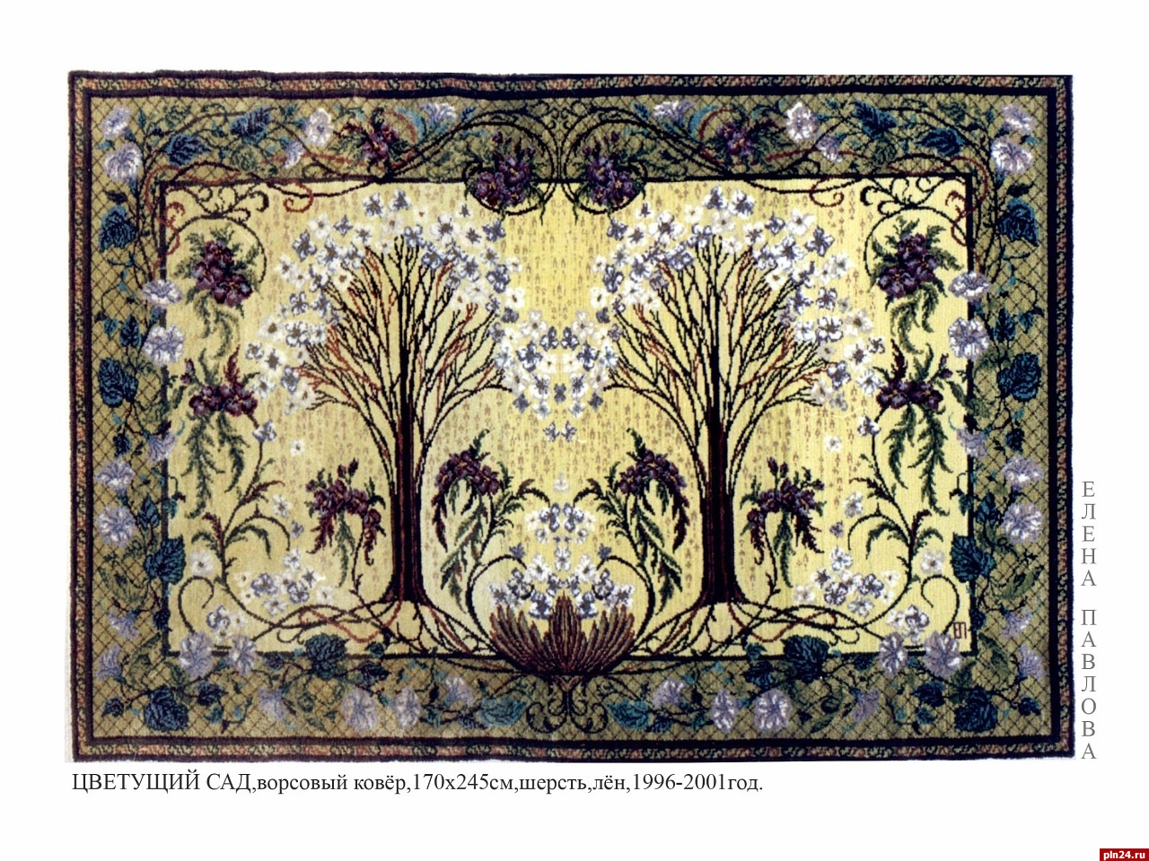 «Ковроткачество всегда было и остаётся делом трудоёмким. Не суетливая собранность, целеустремлённость – основные особенности характера Елены – позволяют ей идти этим сложным путём, создавая при этом произведения, исполненные гармонии и сдержанной красоты. Гобелены Елены Павловой всегда отличаются высоким качеством профессионального мастерства, изысканностью цвета и декоративных мотивов», – рассказали организаторы.