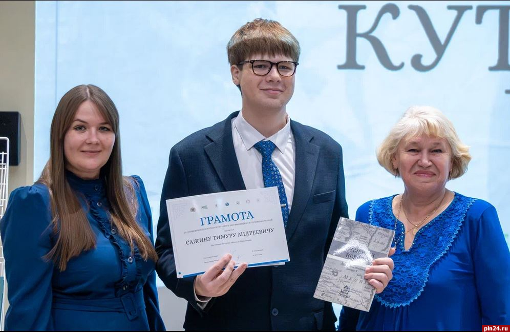 Лучшей работой, посвящённой 80-летию Победы в Великой Отечественной войне, признан доклад ученика вечерней общеобразовательной школы № 1 Богдана Иванько про псковичей – героев СССР (наставник – Наталья Грищенко).