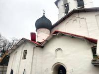 В 1797 году существовали два придела Сретения Господня и Иоанна Богослова. В 1780 году была разобрана двухпролётная звонница, и рядом с церковью построена колокольня у юго-восточной стороны. В 1941-1944 годах здание горело и было сильно повреждено. В 1964—1966 годах воссоздана звонница на северной стене. Реставрации 1946-1974 годов вернули храму древние формы одного из наиболее значительных памятников псковского храмового зодчества XVI века. Но работа не была завершена.