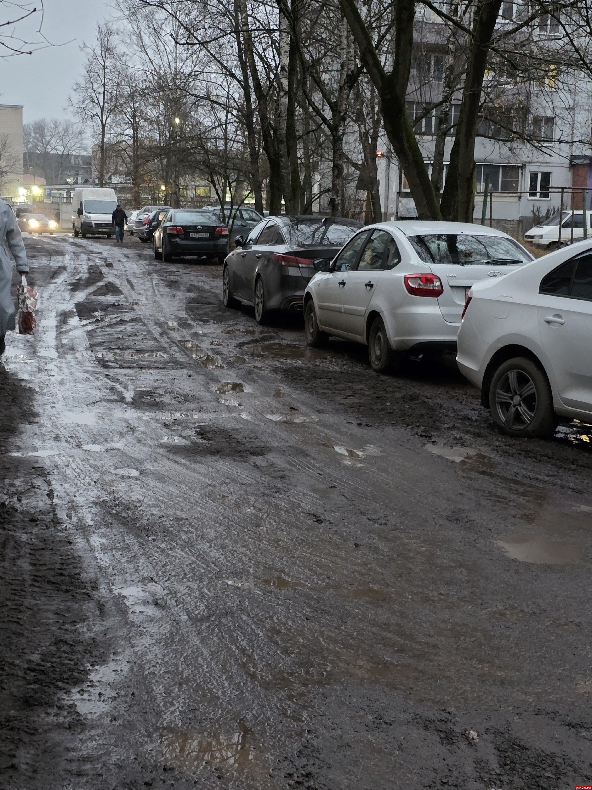 Мы живём в городе Пскове на улице Юрия Гагарина в доме №6. Во время длительного ремонта улицы Яна Фабрициуса гружёные самосвалы ездили через наш двор.
