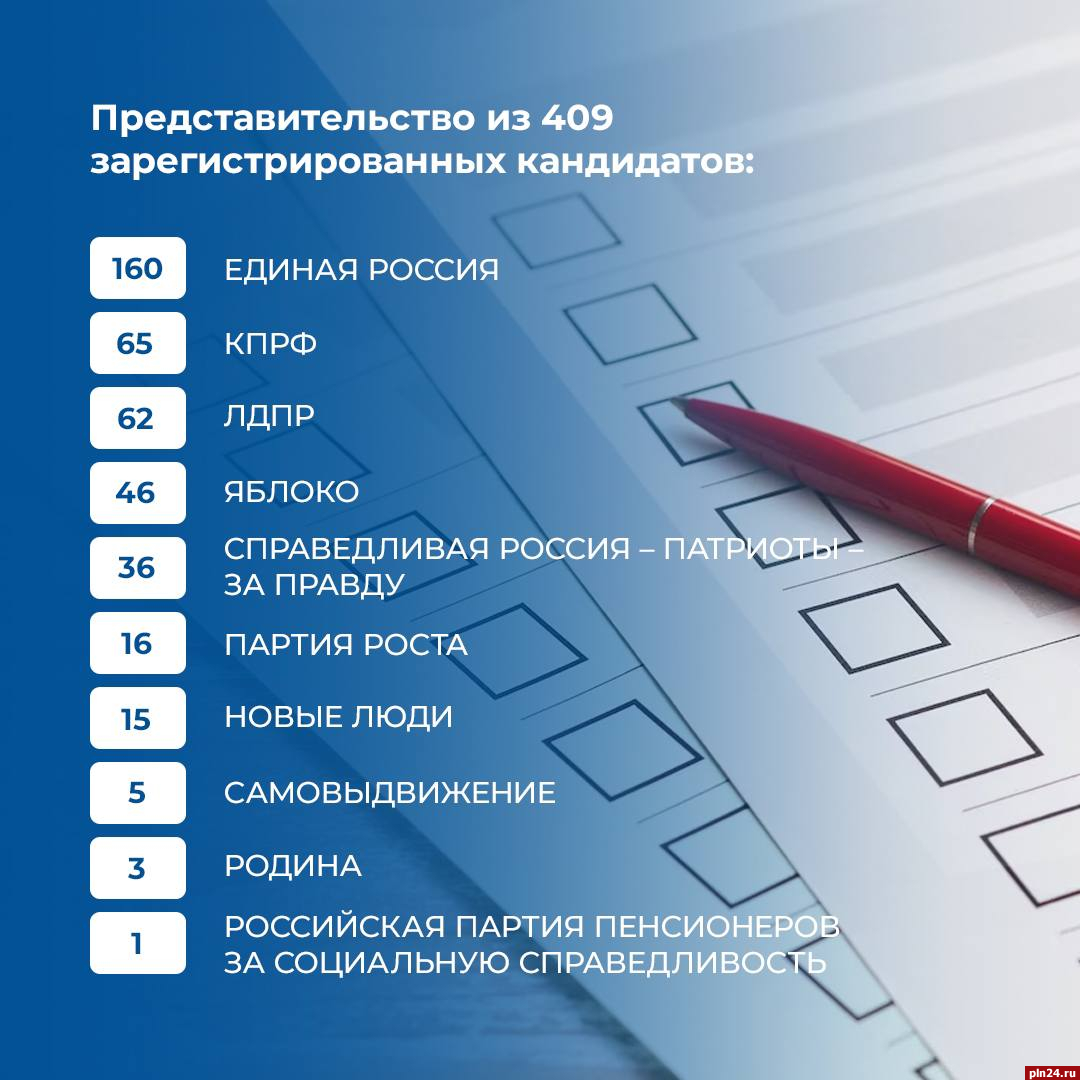 На выборах в органы местного самоуправления в Псковской области зарегистрировано 409 кандидатов. Об этом Псковской Ленте Новостей сообщили в пресс-службе Избирательной комиссии Псковской области.