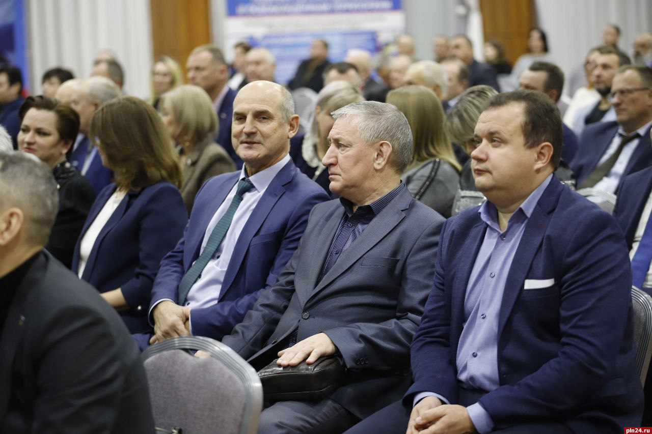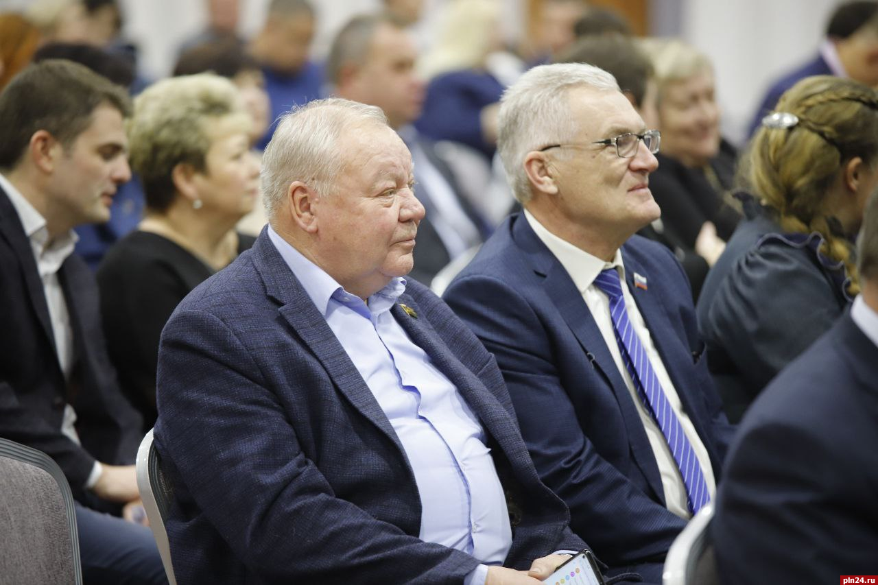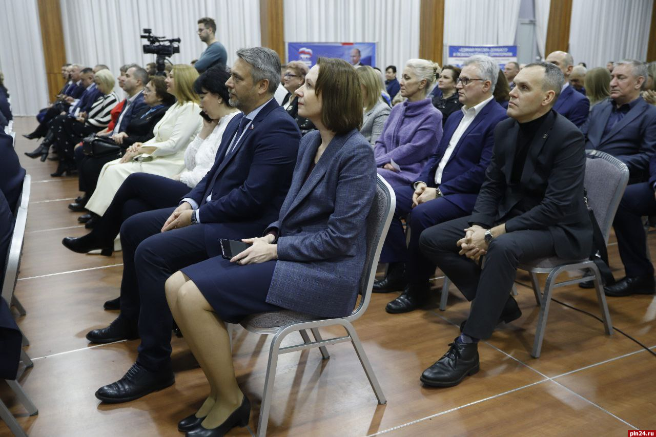 На мероприятии также присутствуют глава города Пскова Борис Елкин, глава города Великие Луки Николай Козловский, а также другие представители партии.