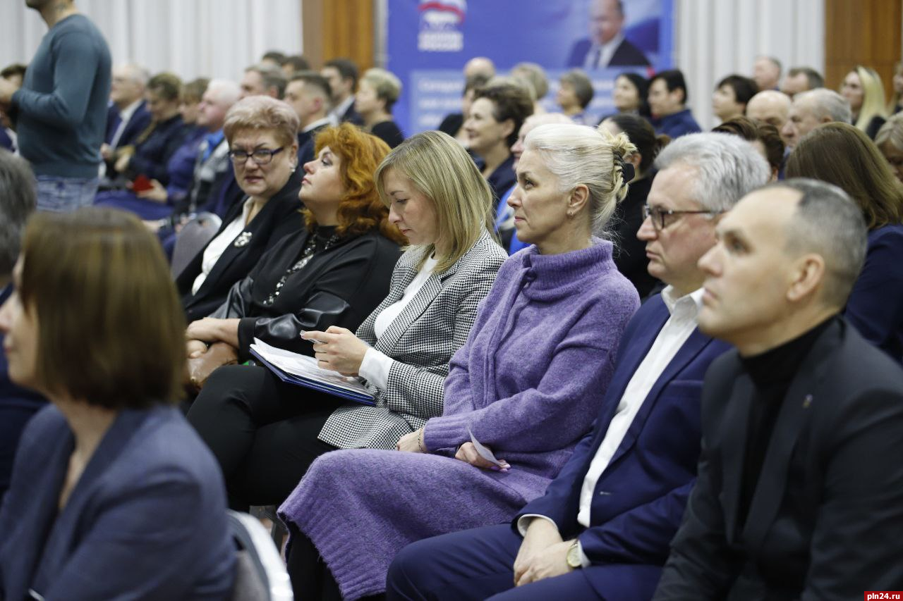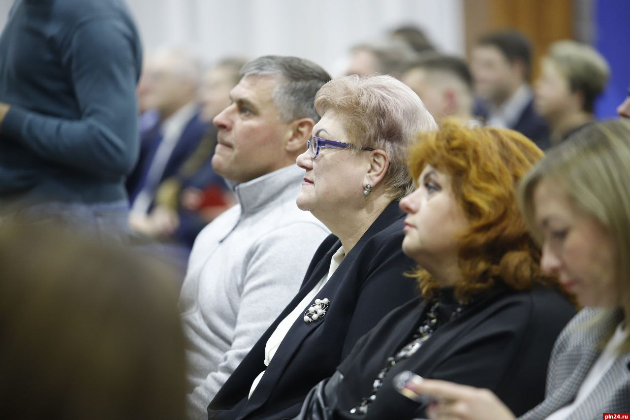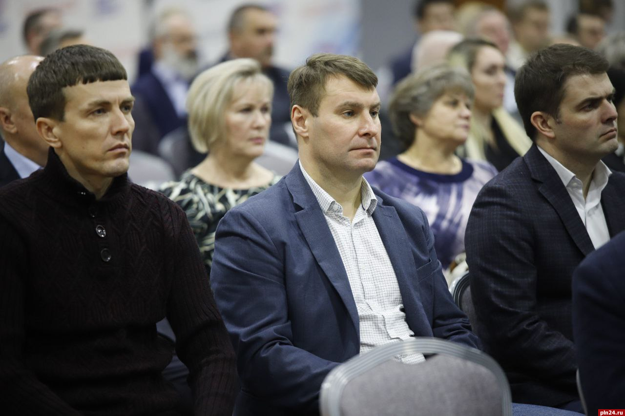 На мероприятии также присутствуют глава города Пскова Борис Елкин, глава города Великие Луки Николай Козловский, а также другие представители партии.