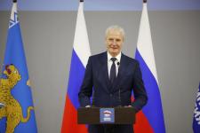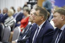 Губернатор Псковской области Михаил Ведерников открыл конференцию и поблагодарил всех за поддержку на губернаторских выборах.