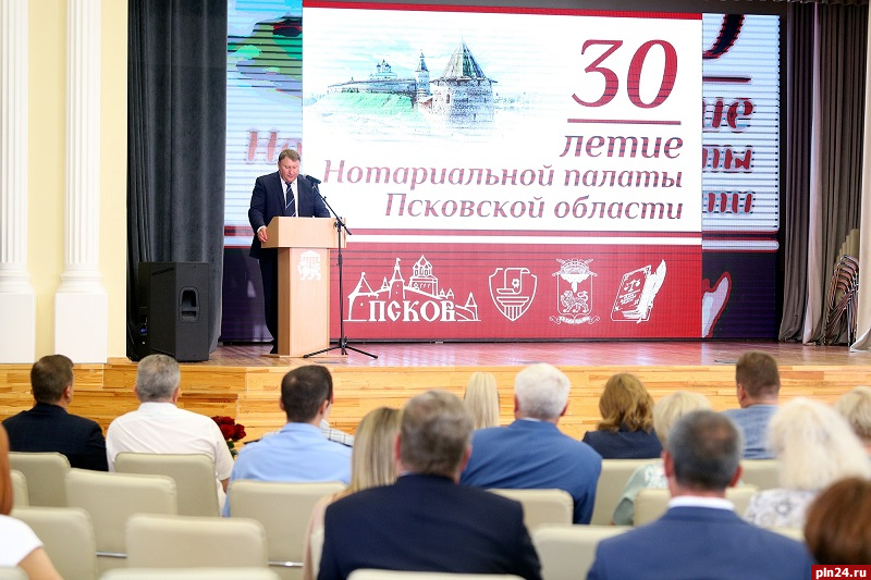 В честь 30-летия образования областной нотариальной палаты в Пскове прошло торжественное мероприятие, приуроченное к юбилейной дате. Поздравить нотариальное сообщество пришли представители региональной власти: заместитель губернатора Александр Серавин и вице-спикер областного Собрания депутатов Александр Братчиков. Также среди приглашённых гостей были руководители исполнительных органов, представители муниципальной власти и общественных организаций, сообщили Псковской Ленте Новостей в пресс-службе регионального парламента.